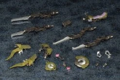The Hexa Gear Motor Punisher is mainly used for security, maintenance and reconnaissance missions, and features superior maneuverability, cruise distance and flight time. Its main weapon is the Biting Scissors, as well as an automatic grenade launcher and grapple blade. It’s about 22cm long when assembled, and it can be ridden by up to 2 Governors. Molded in gray, dark green and silvery-gray plastic.