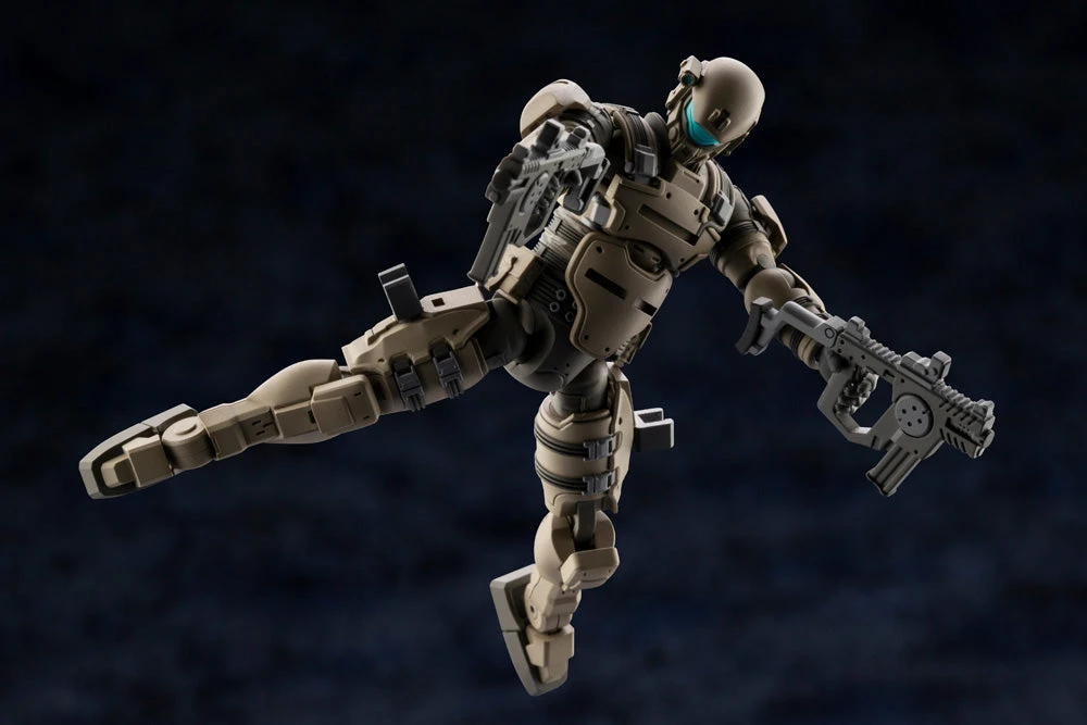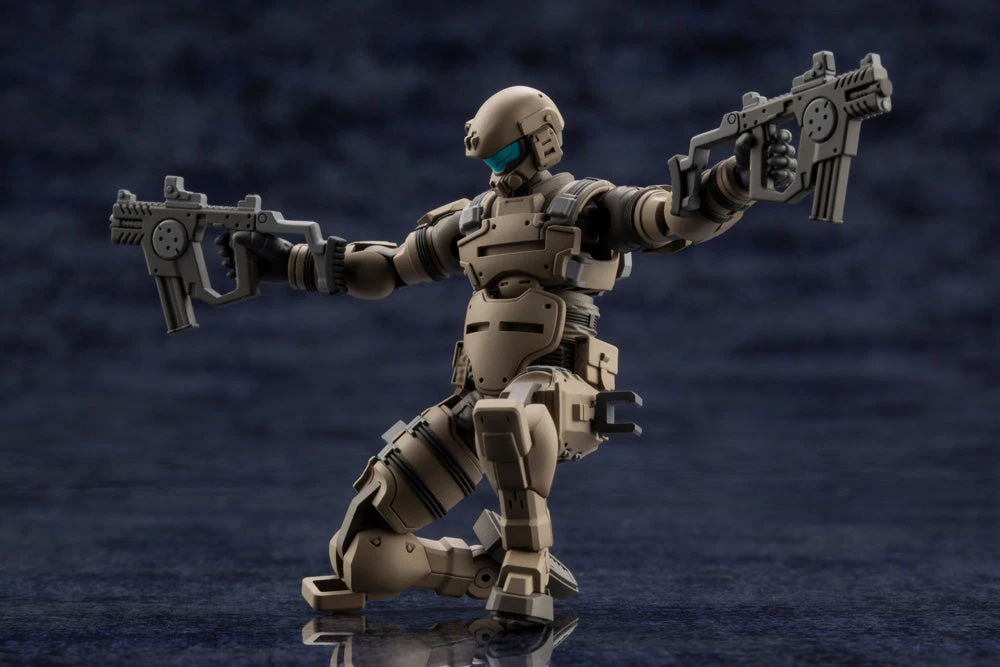 This model is just under 3 inches in size and has 28 points of articulation for creating many various poses. The main sensor part on the front of its head is made with a pre-painted part, which can also be exchanged for one with the optional “Multitracker” part attached. The included two submachine guns can be attached to the model’s thighs through attachment parts.