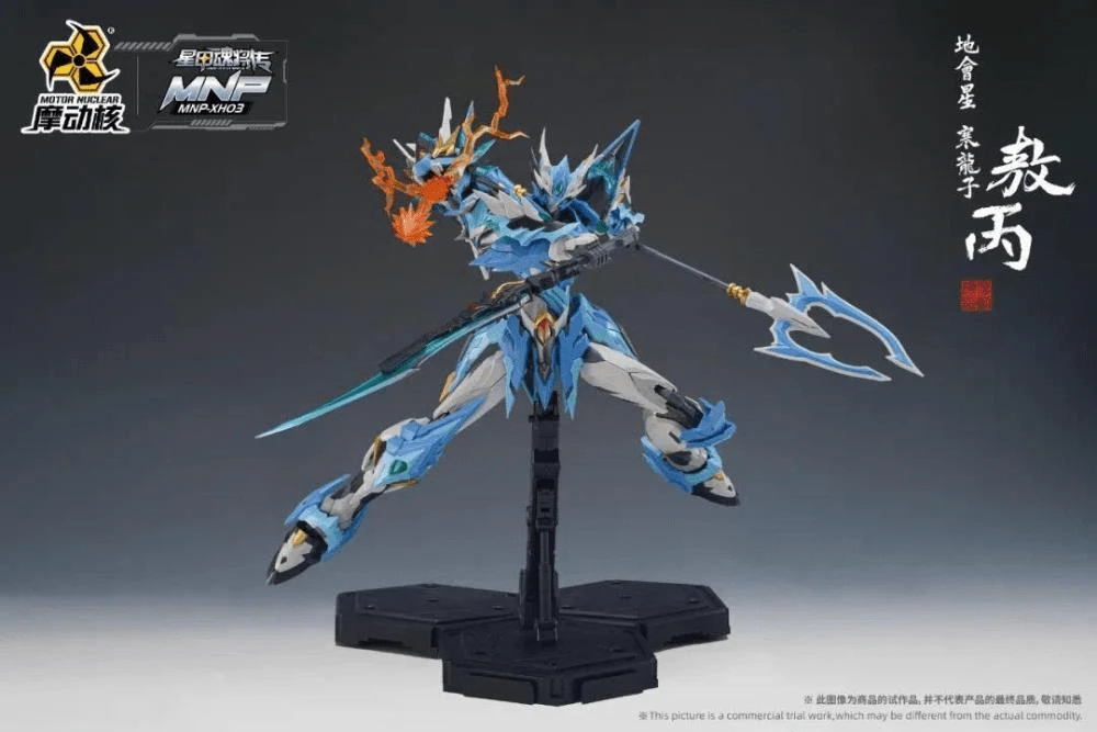 The Legend of Star General series continues with Motor Nuclear’s MNP-XH03 HanLongZi AoBing Blue Dragon in model kit form!